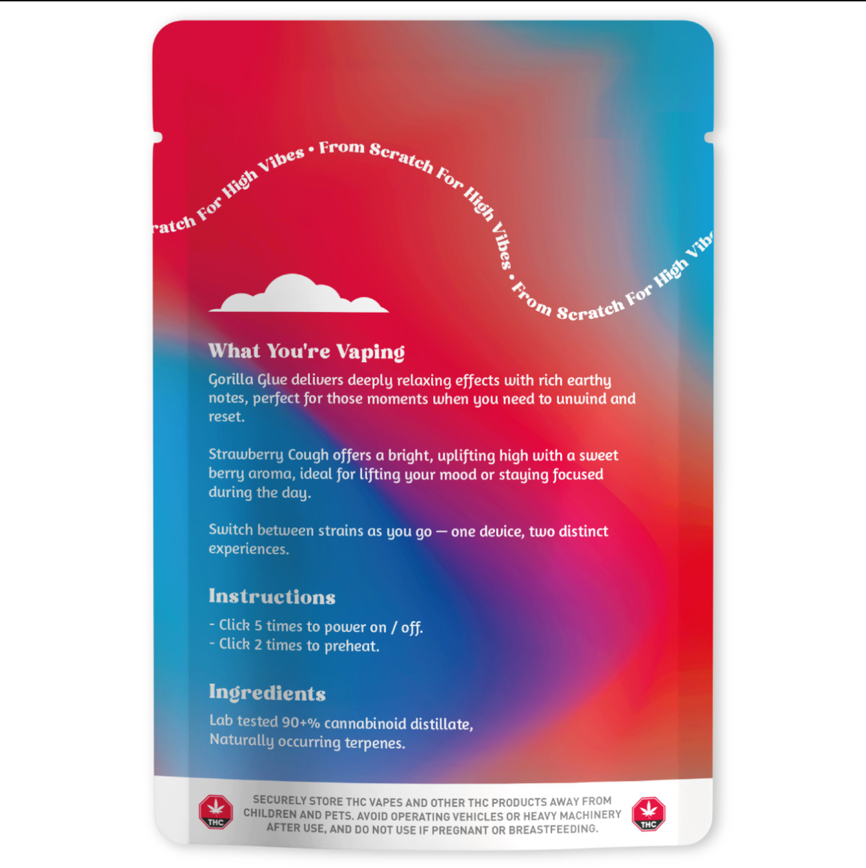 Ingredients: Lab tested 90+% cannabinoid distillate, Naturally occurring terpenes.