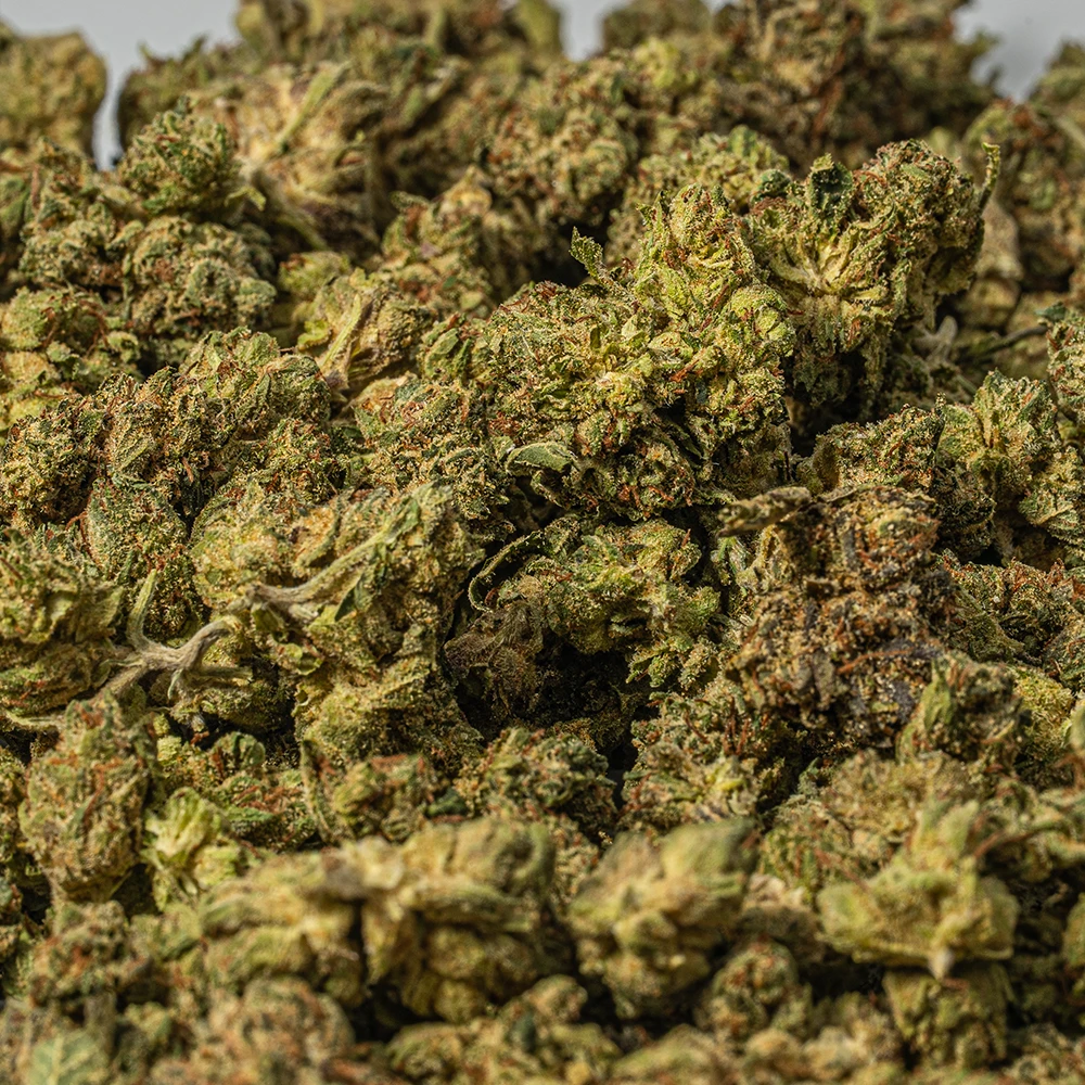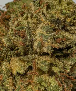 Galactic Gas is a rare slightly indica dominant hybrid strain (60% indica/40% sativa) created through crossing the classic Gelato #45 X Gushers strains. Even with parents like these, Galactic Gas has a surprisingly pungent and skunky aroma of heavy diesel and gas that will clear any room. The flavor is remarkably similar, with a spicy skunky overtone that’s accented by heavy pungent earth and herbs. The Galactic Gas high is just as intoxicating as its scent, with calming yet creative effects that will have your mind soaring high while your body settles into a pleasant heaviness. You’ll feel a sense of happiness wash over you a few minutes after your final toke, easing away any negative or racing thoughts almost immediately. A light physical tingle comes next, building in intensity before dropping your limbs into a super heavy state that leaves you pretty couch-locked and immovable. With these sleepy effects and its high 23-27% average THC level, Galactic Gas is often said to be perfect for treating conditions such as chronic pain, insomnia, muscle spasms or cramps, spasticity and arthritis. This bud has small rounded colorful emerald green nugs with deep purple undertones, bright yellow-orange hairs and a frosty thick coating of golden amber crystal trichomes.