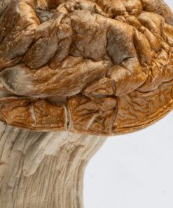 Makilla Gorilla is a rare and potent Psilocybe cubensis strain known for its heavy body structure, high psilocybin content, and intense psychedelic effects. A hybrid of unknown but powerful lineage, this strain has gained attention for its dense, thick stems and large caps that range in color from creamy white to golden tan, often showing deep blue bruising—a sign of its rich alkaloid content.