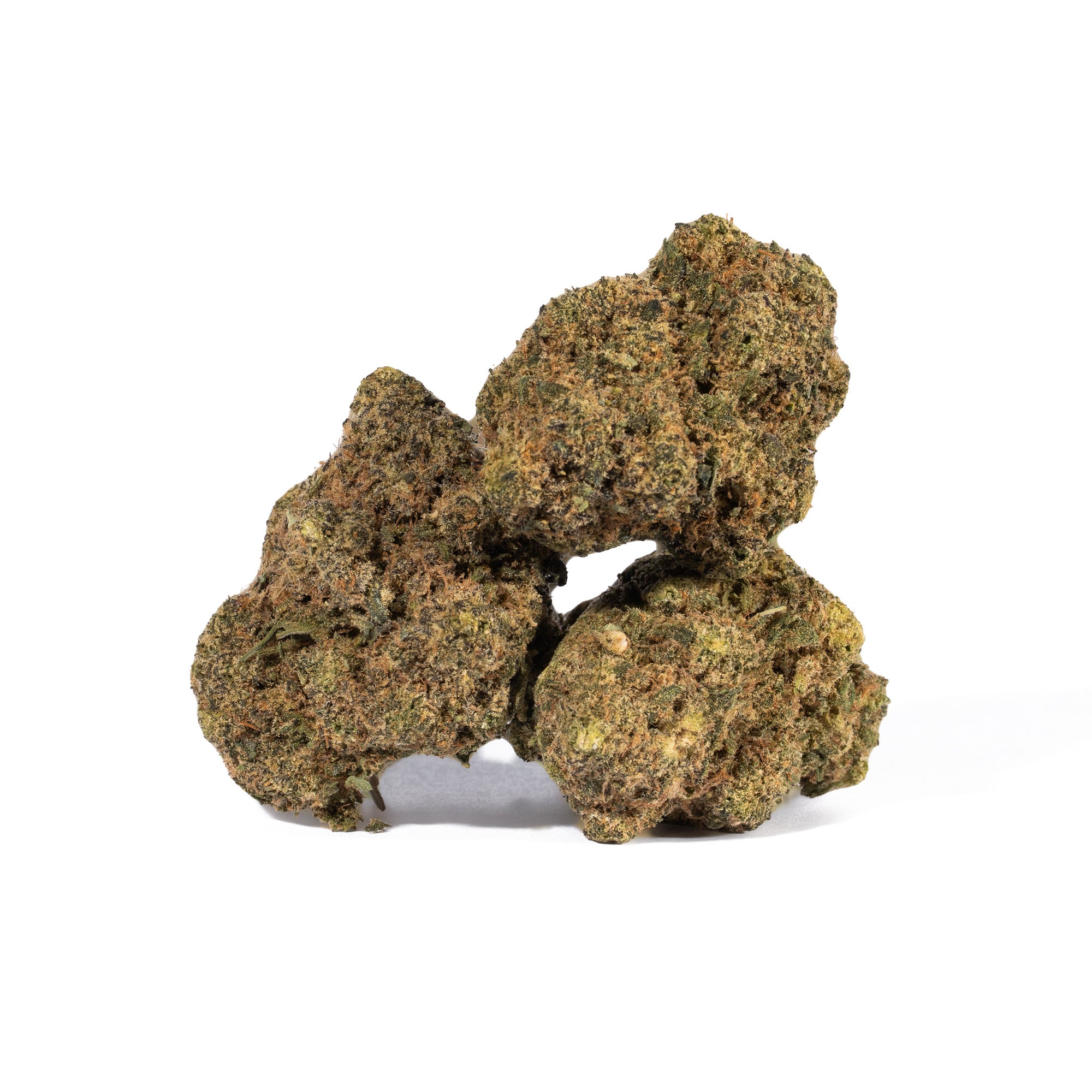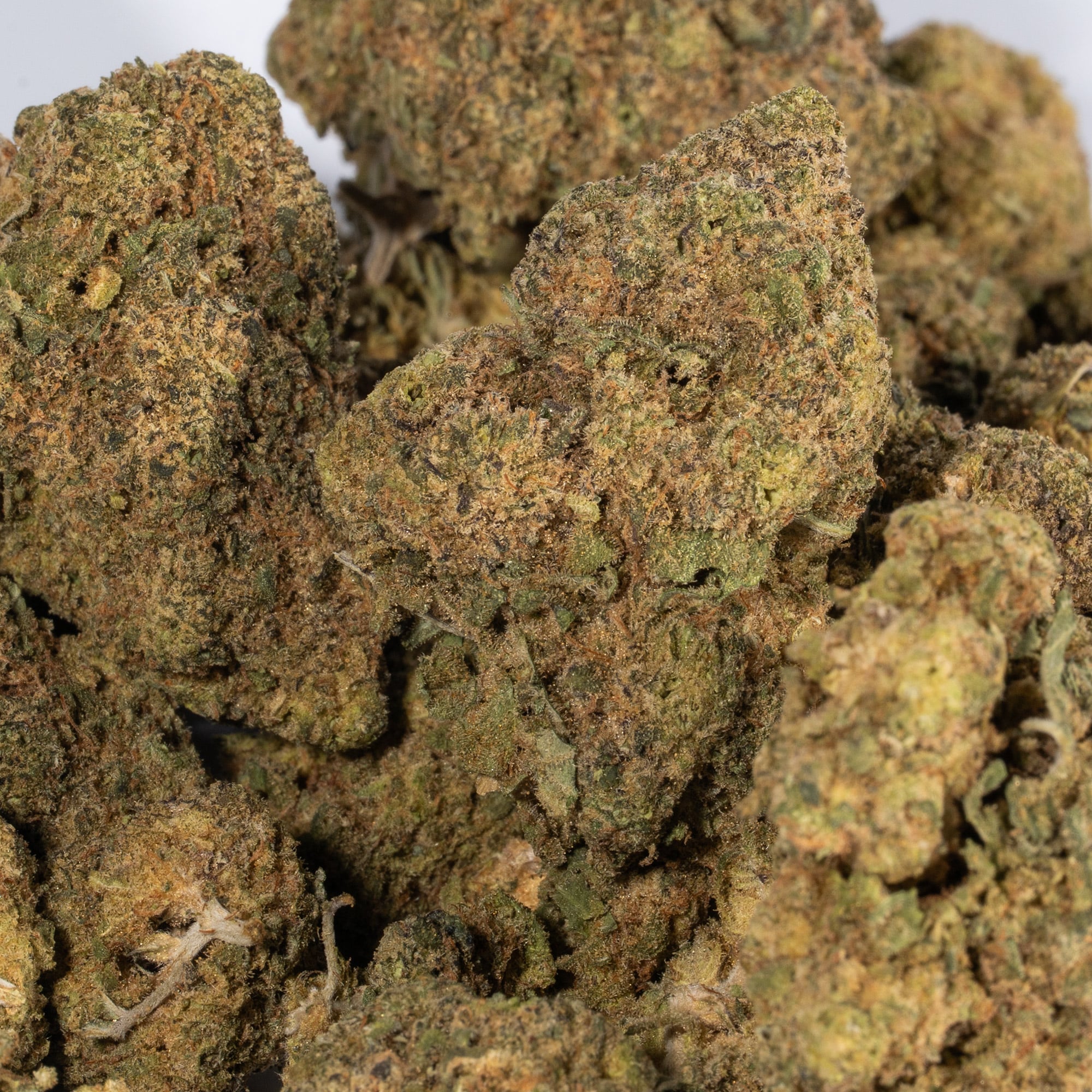 Pennywise is an indica dominant hybrid strain (70% indica/30% sativa) created through crossing the potent Harlequin X Jack the Ripper strains. Named for the iconic clown from Stephen King’s It, Pennywise packs an amazing high that won’t leave you feeling terrified. Rather, Pennywise packs a mellow and lifting high that helps to calm the mind and body and really help you kick back and relax when you need it most. The high starts a few minutes after your final toke, filling your brain with a lifted sense of happiness that pushes out any negative or racing thoughts immediately. You’ll find your body filled with a sense of soothing calm that helps ease aching and sore muscles and joints without causing too much couchlock or sedation. In combination with its moderate 17-19% THC level and super high 9-10% CBD level, Pennywise is the perfect highly medicinal strain for treating a variety of conditions including chronic stress or anxiety, migraines or headaches, chronic pain, inflammation, cramps or muscle spasms and fibromyalgia. This bud has a sweet and spicy fruity bubblegum flavor with hints of sour lemon and a touch of herbal coffee. The aroma is of a fresh cup of spicy black coffee with a peppery overtone that’s accented by touches of sour citrus. Pennywise buds have dense grape-shaped bright neon green nugs with thick orange hairs and a coating of chunky bright white crystal trichomes.