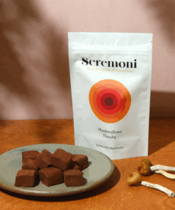 These hand crafted dark chocolate freeze dried marshmallows are an incredibly delicious way to consume your dose. They are light, crunchy and so chocolatey! They’re also great floating in Seremoni hot chocolate for a double dose of chocolate and psilocybin.