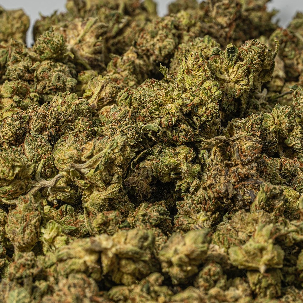 Galactic Gas is a rare slightly indica dominant hybrid strain (60% indica/40% sativa) created through crossing the classic Gelato #45 X Gushers strains. Even with parents like these, Galactic Gas has a surprisingly pungent and skunky aroma of heavy diesel and gas that will clear any room. The flavor is remarkably similar, with a spicy skunky overtone that’s accented by heavy pungent earth and herbs. The Galactic Gas high is just as intoxicating as its scent, with calming yet creative effects that will have your mind soaring high while your body settles into a pleasant heaviness. You’ll feel a sense of happiness wash over you a few minutes after your final toke, easing away any negative or racing thoughts almost immediately. A light physical tingle comes next, building in intensity before dropping your limbs into a super heavy state that leaves you pretty couch-locked and immovable. With these sleepy effects and its high 23-28% average THC level, Galactic Gas is often said to be perfect for treating conditions such as chronic pain, insomnia, muscle spasms or cramps, spasticity and arthritis. This bud has small rounded colorful emerald green nugs with deep purple undertones, bright yellow-orange hairs and a frosty thick coating of golden amber crystal trichomes.