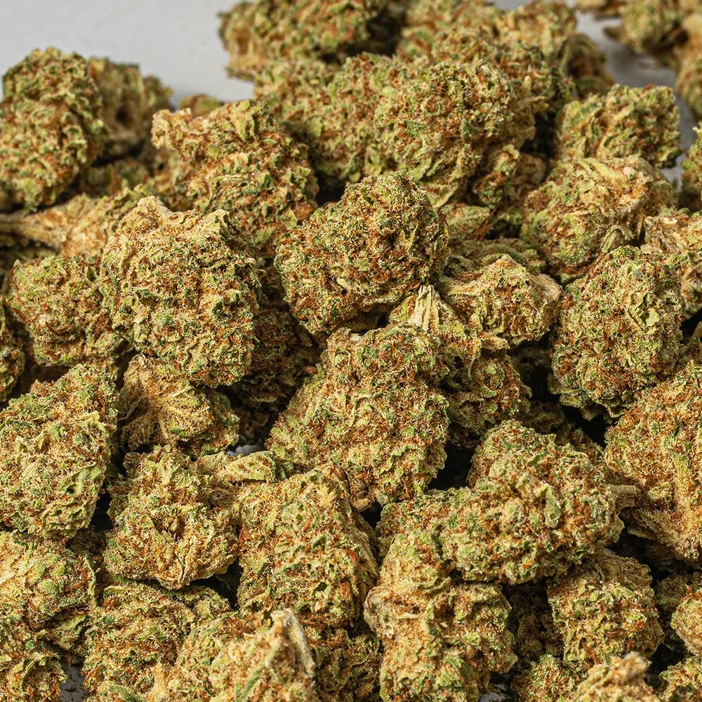 Raspberry Parfait is a sativa dominant hybrid strain (80% sativa/20% indica) created through crossing the delicious Shishkaberry X Truffula Tree strains. When it comes to the flavor of this bud, the name says it all. Raspberry Parfait packs a sweet and creamy raspberry berry flavor with hints of fresh fruitiness galore. The aroma is very similar, with a fruity raspberry berry overtone accented by spicy earthiness and woody pine. The Raspberry Parfait high settles in a few minutes after your final exhale, filling your brain with a lifted sense of happiness that instantly erases any negative or racing thoughts. You’ll feel calm and focused with a sense of purpose that gets you jumping on creative tasks. At the same time, a tingly body high will wash over you, helping you to feel relaxed without dampening your energy level in the slightest. Thanks to these effects and its high 17-22% average THC level, Raspberry Parfait is often chosen to treat those suffering from conditions such as chronic pain, cramps or muscle spasms, headaches or migraines, chronic stress and depression. This bud has heart-shaped minty green nugs with tons of thin red-orange hairs and a coating of frosty amber-tinted white crystal trichomes.